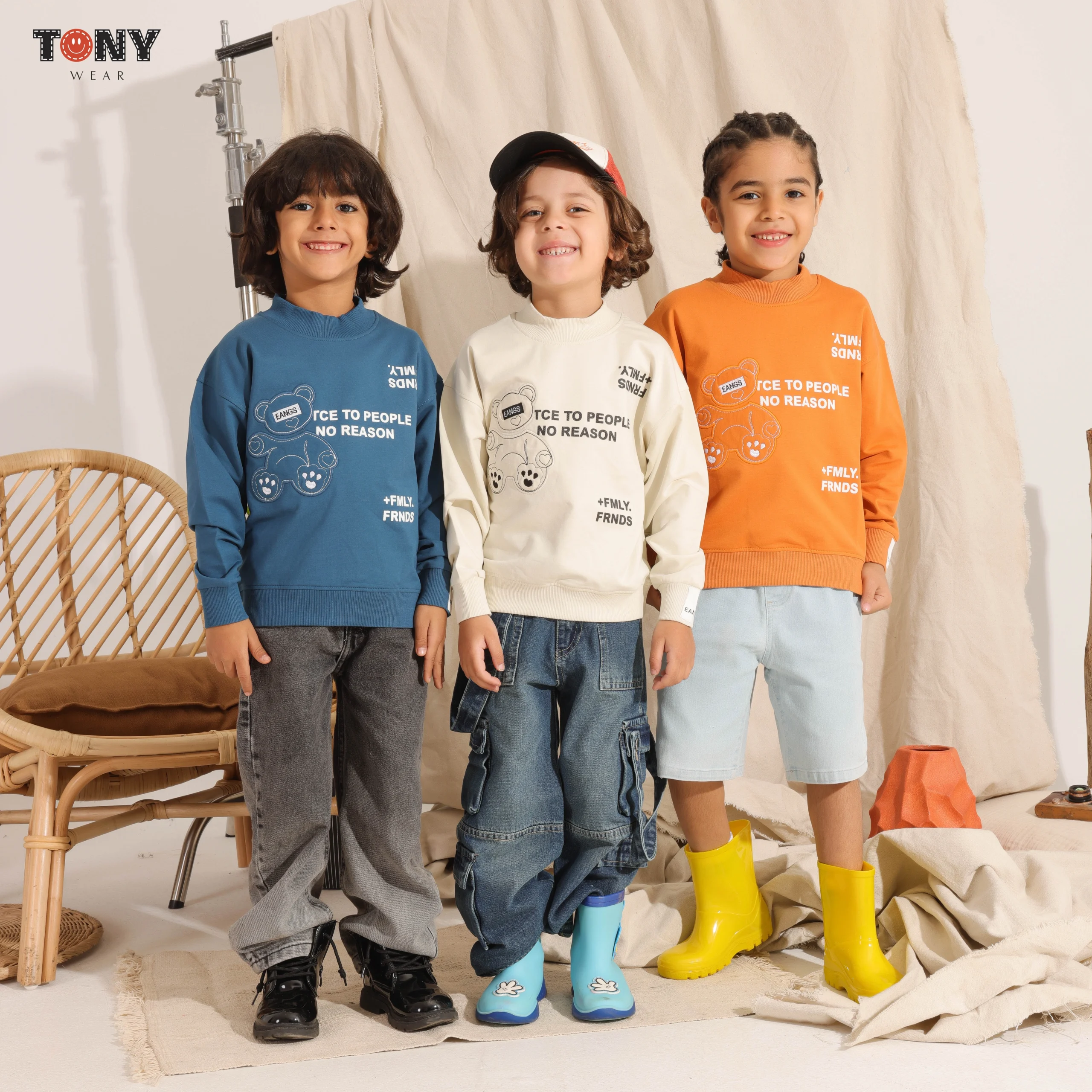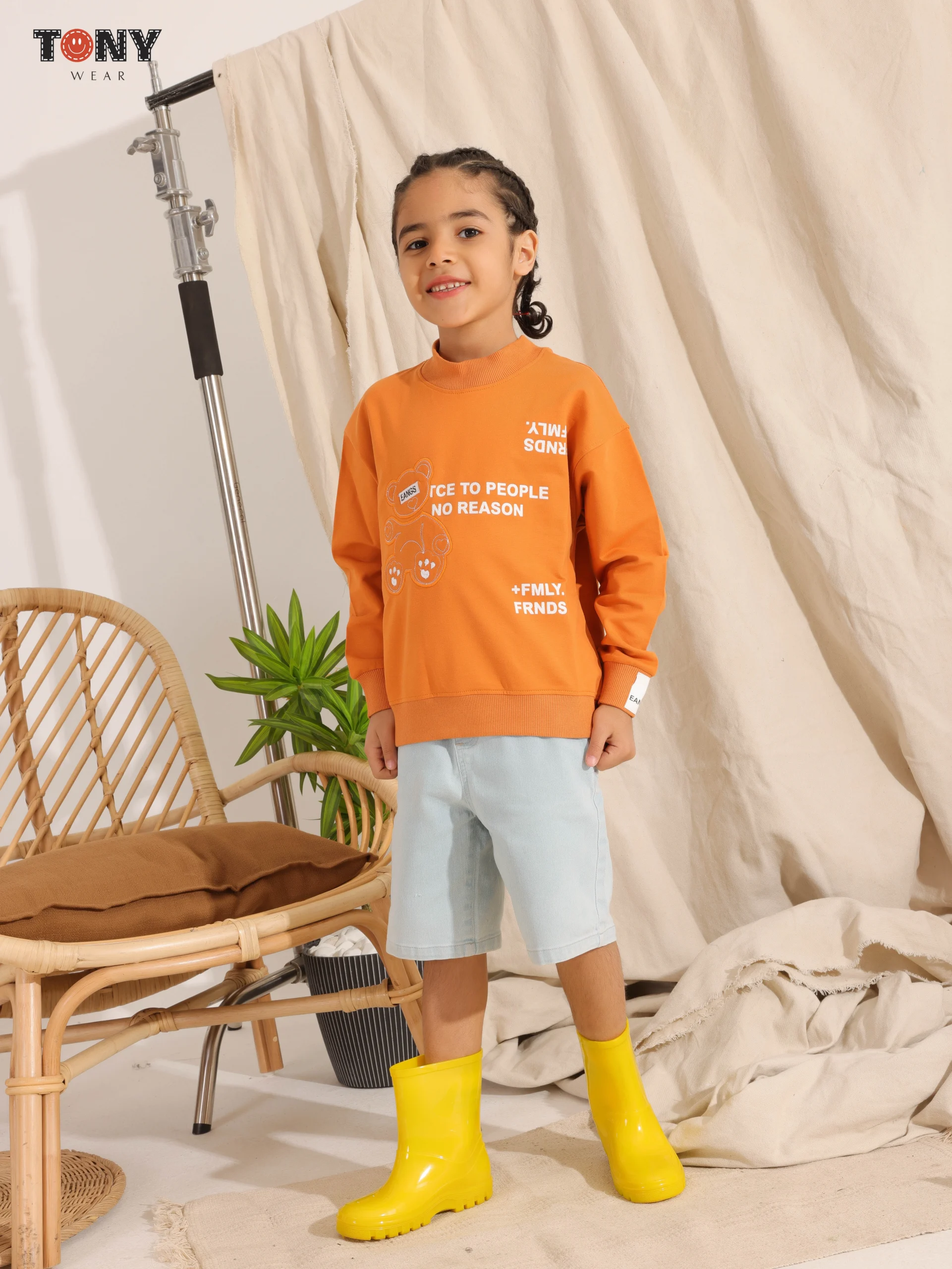 انشر اللطف والأناقة مع كنزة الأولاد الصيفية القطنية ذات الرقبة المستديرة “Nice To People”. تتميز هذه الكنزة الرائعة برسومات دب عصرية وشعار “Nice To People No Reason” الملهم. مصنوعة من قطن صيفي ناعم ومريح للعب طوال اليوم.