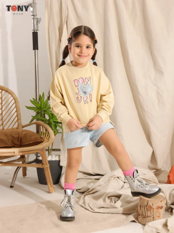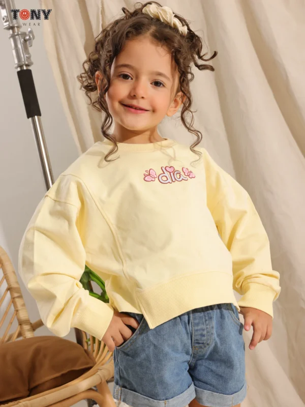 Elevate her casual collection with the Little Girls Medical Cotton Slogan Crewneck (SKU: T14001). Designed for parents who prioritize fabric quality, this sweatshirt is crafted from our exclusive “Imported Medical” cotton. It offers a level of softness and skin-safety that standard store-bought clothes simply cannot match.
