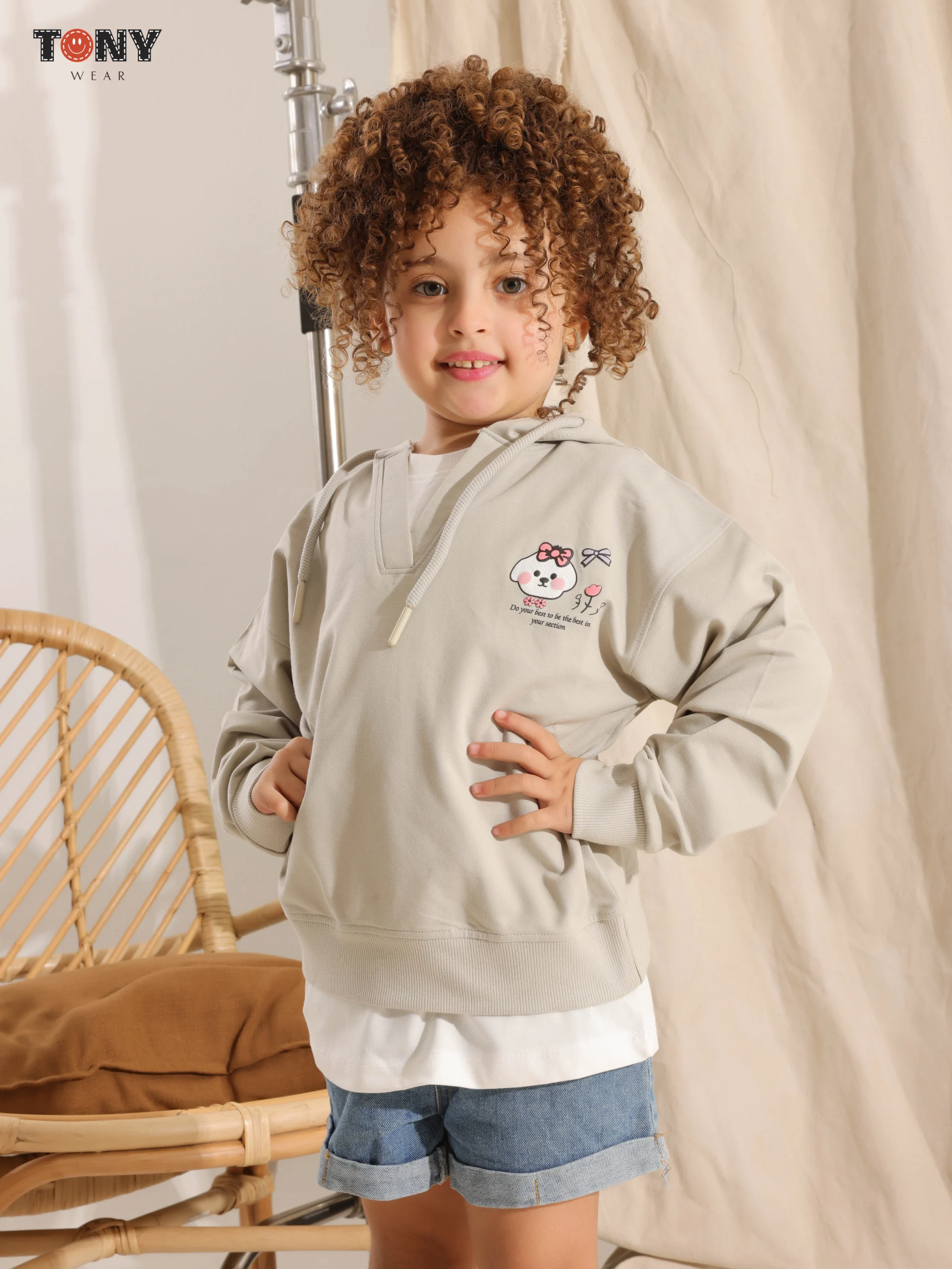 Cute Character Logo: A small, adorable animal face (bear/mouse) is embroidered or printed on the left chest. It?s a subtle detail that kids love.